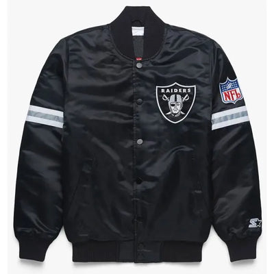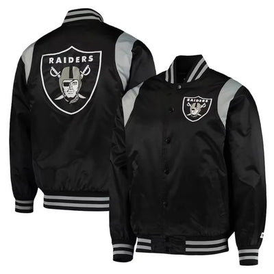Los Angeles Raiders The Pick and Roll Full-Snap Varsity Black Satin Men's Bomber Jacket
