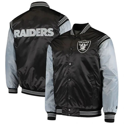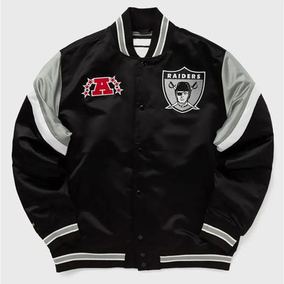 Los Angeles Raiders Full-Snap Varsity Black and Grey Satin Men's Bomber Jacket