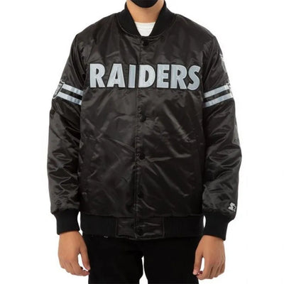 Los Angeles Raiders Midweight Full-Snap Varsity Black Satin Men's Bomber Jacket