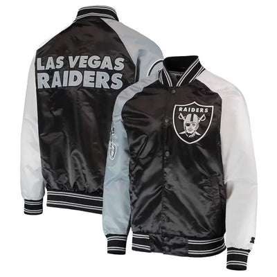 Los Angeles Raiders Historic Renegade Full-Snap Varsity Black & White Satin Men's Bomber Jacket