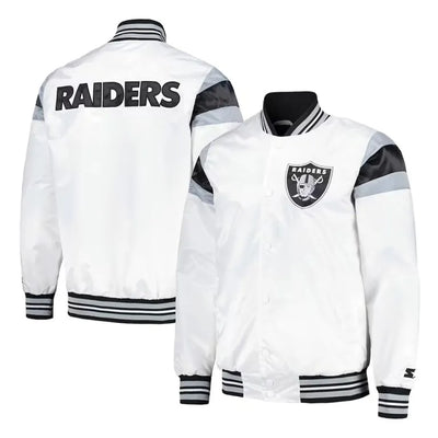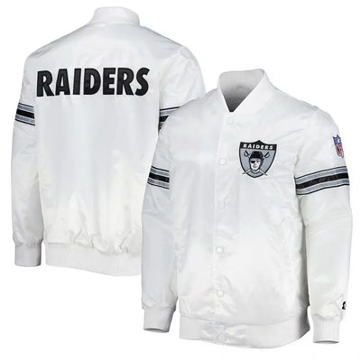Los Angeles Raiders The Power Forward Full-Snap Varsity White Satin Men's Bomber Jacket