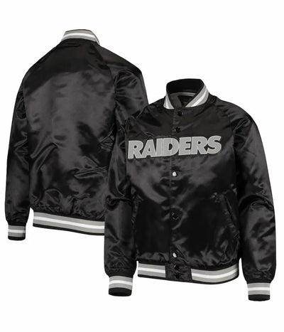 Los Angeles Raiders Line Up Full-Snap Varsity Black Satin Men's Bomber Jacket