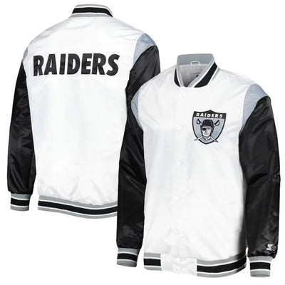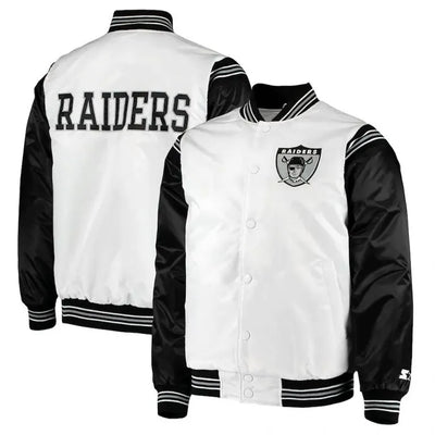 Los Angeles Raiders Clean Up Throwback Full-Snap Varsity White & Black Satin Men's Bomber Jacket