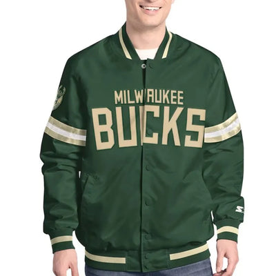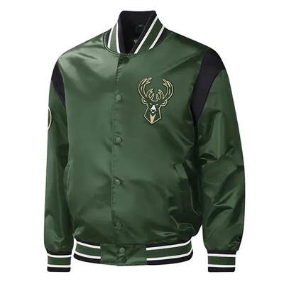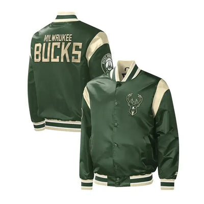 Milwaukee Bucks The Offensive Full-Snap Varsity Green Satin Men's Bomber Jacket