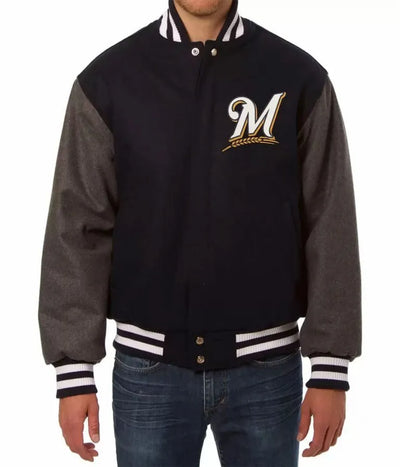 Milwaukee Brewers Varsity Wool Two Tone Black and Gray Men's Jacket