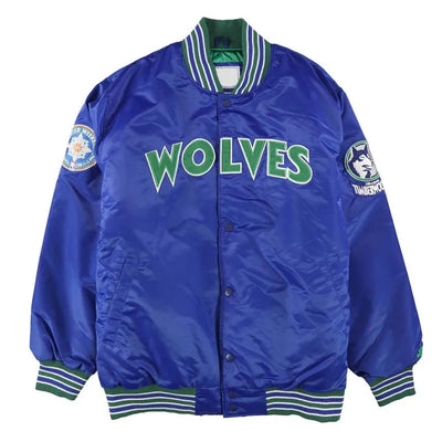 Minnesota Timberwolves All Star Weekend Full-Snap Varsity Blue Satin Men's Bomber Jacket