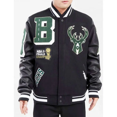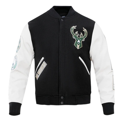 Milwaukee Bucks Varsity Black Wool & Genuine Leather Sleeves Men's Letterman Jacket