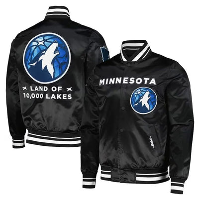 Minnesota Timberwolves 2024 City Edition Full-Snap Varsity Black Satin Men's Bomber Jacket