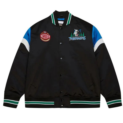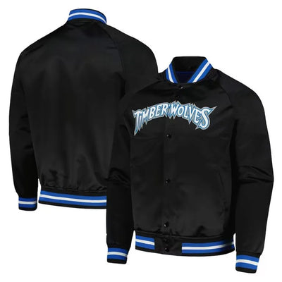 Minnesota Timberwolves Heavyweight Full-Snap Varsity Black Satin Men's Bomber Jacket