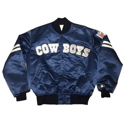 90โs Dallas Cowboys Full-Snap Varsity Navy Blue Satin Men's Bomber Jacket
