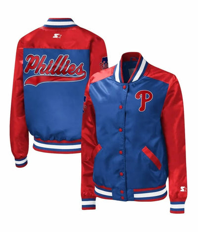 Philadelphia Phillies Full-Snap Royal Blue & Red Satin Men's Bomber Jacket