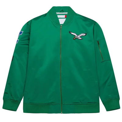 Philadelphia Eagles Vintage Logo Full-Zip Varsity Green Satin Lightweight Men's Bomber Jacket