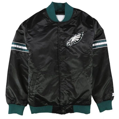 Philadelphia Eagles Track Striped Full-Snap Varsity Black Satin Men's Bomber Jacket