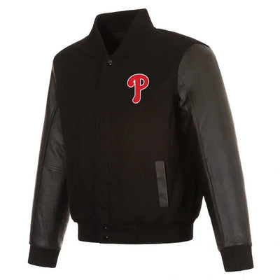Philadelphia Phillies Black Wool and Leather Sleeves Varsity Men's Jacket