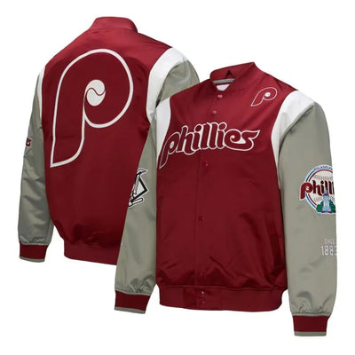 Philadelphia Phillies Cooperstown Team Origins Full-Snap Burgundy/Gray Satin Men's Jacket