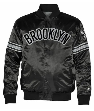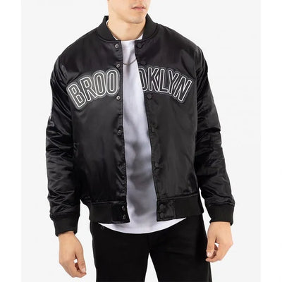 Brooklyn Nets Full-Snap Varsity Black Satin Men's Bomber Jacket