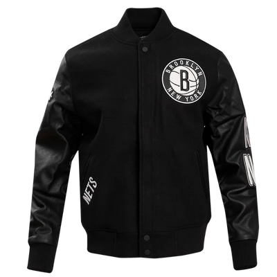 Brooklyn Nets NBA Black Wool & Genuine Leather Sleeves Men's Varsity Letterman Jacket