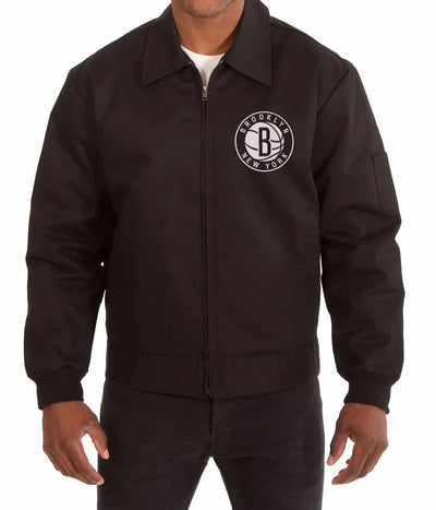 Brooklyn Nets Workwear Full-Snap Varsity Black Cotton Men's Bomber Jacket