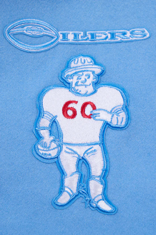 Houston Oilers fabric applique stitched logos/letters at front, back & sleeves