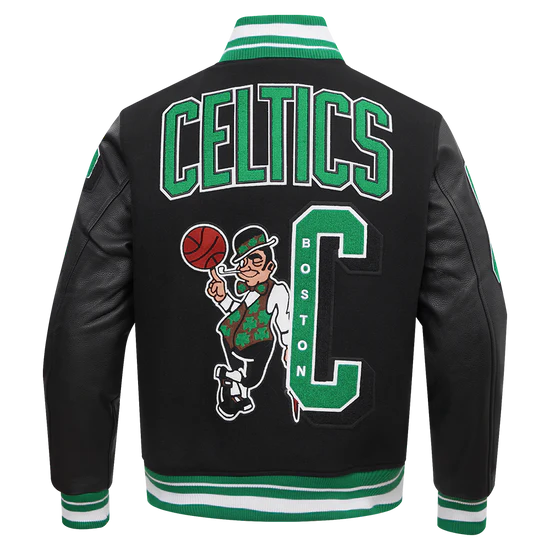 Boston Celtics Mash Up Black Wool & Genuine Leather Sleeves Men&