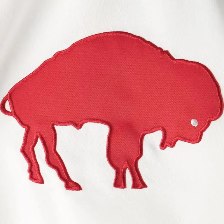 Embroided fabric applique stitched team logo graphics at left-breast & back