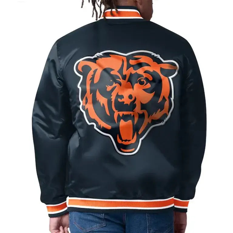Chicago Bears Closer Full-Snap Varsity Navy Blue Satin Men&