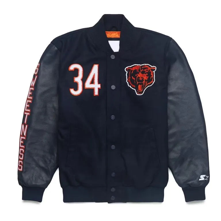 Chicago Bears Walter Payton Navy Blue Wool & Genuine Leather Sleeves Men&