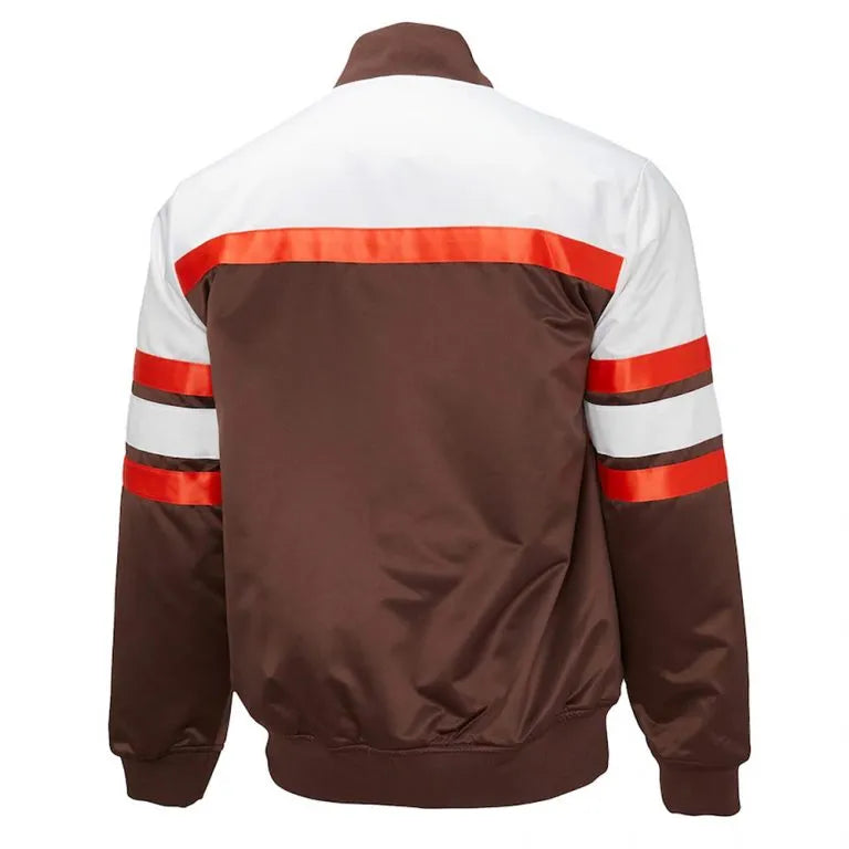 Cleveland Browns 75th Anniversary Full-Snap Varsity Brown and White Satin Men's Bomber Jacket