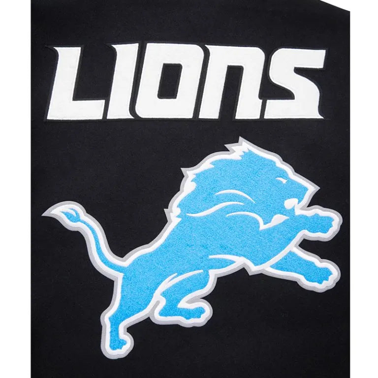 Detroit Lions Mashup Rib Black Wool & White Genuine Leather Sleeves Men&