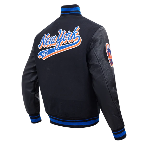 New York Mets Varsity Black Wool & Leather Sleeves Men&