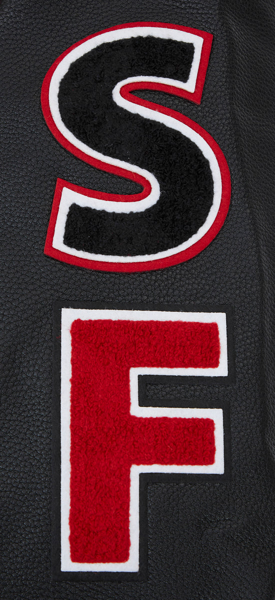Pockets: Two front slant leather-trimmed pockets, one inside pockets